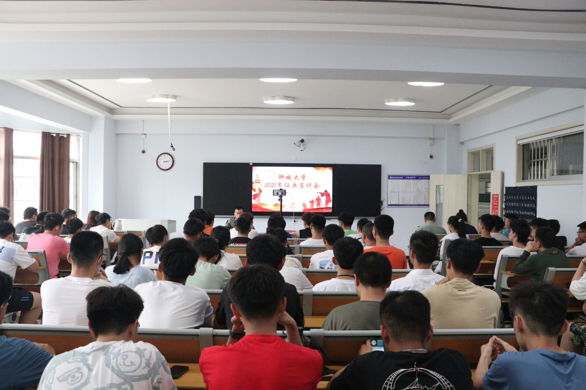 6月17日,物理科学与信息工程学院联合计算机学院、法学院承办聊城大学2021征兵宣讲会,本次宣讲会邀请到东昌府区区委常委、区人武部政治委员岳喜星,东昌府区人武部军事科科长刘旋为同学们讲解征兵方面的知识。