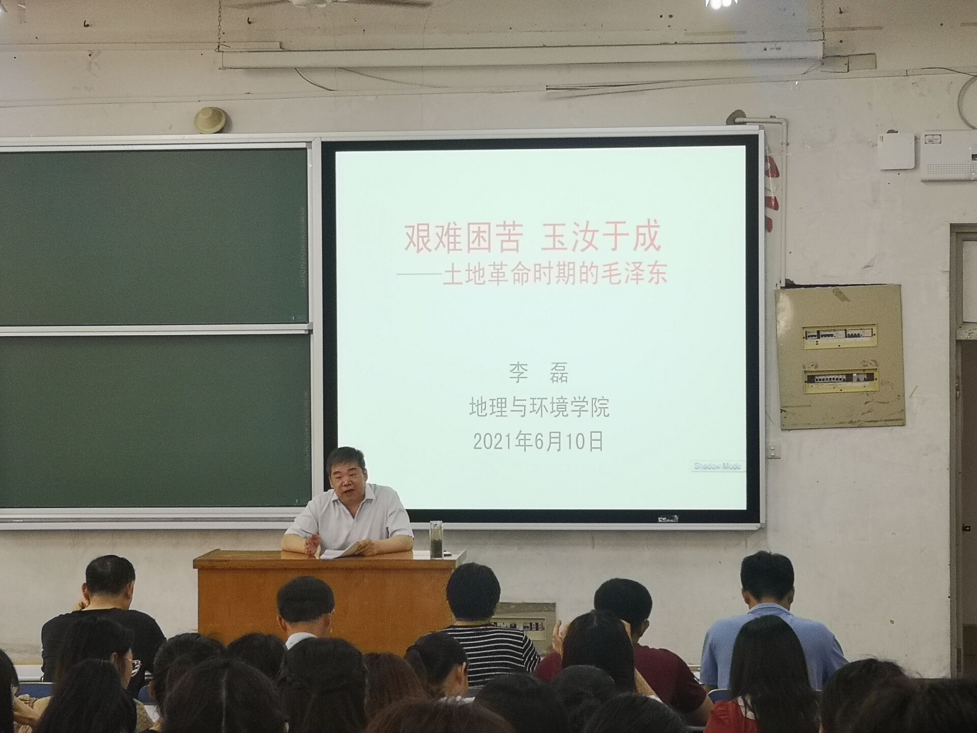 6月10日,地理与环境学院于4#A201开展了党史学习教育专题党课,地理与环境学院党总支书记李磊讲授了题为《艰难困苦 玉汝于成——土地革命时期的毛泽东》的党课,学院全体教职工党员、学生党员参与了此次学习。