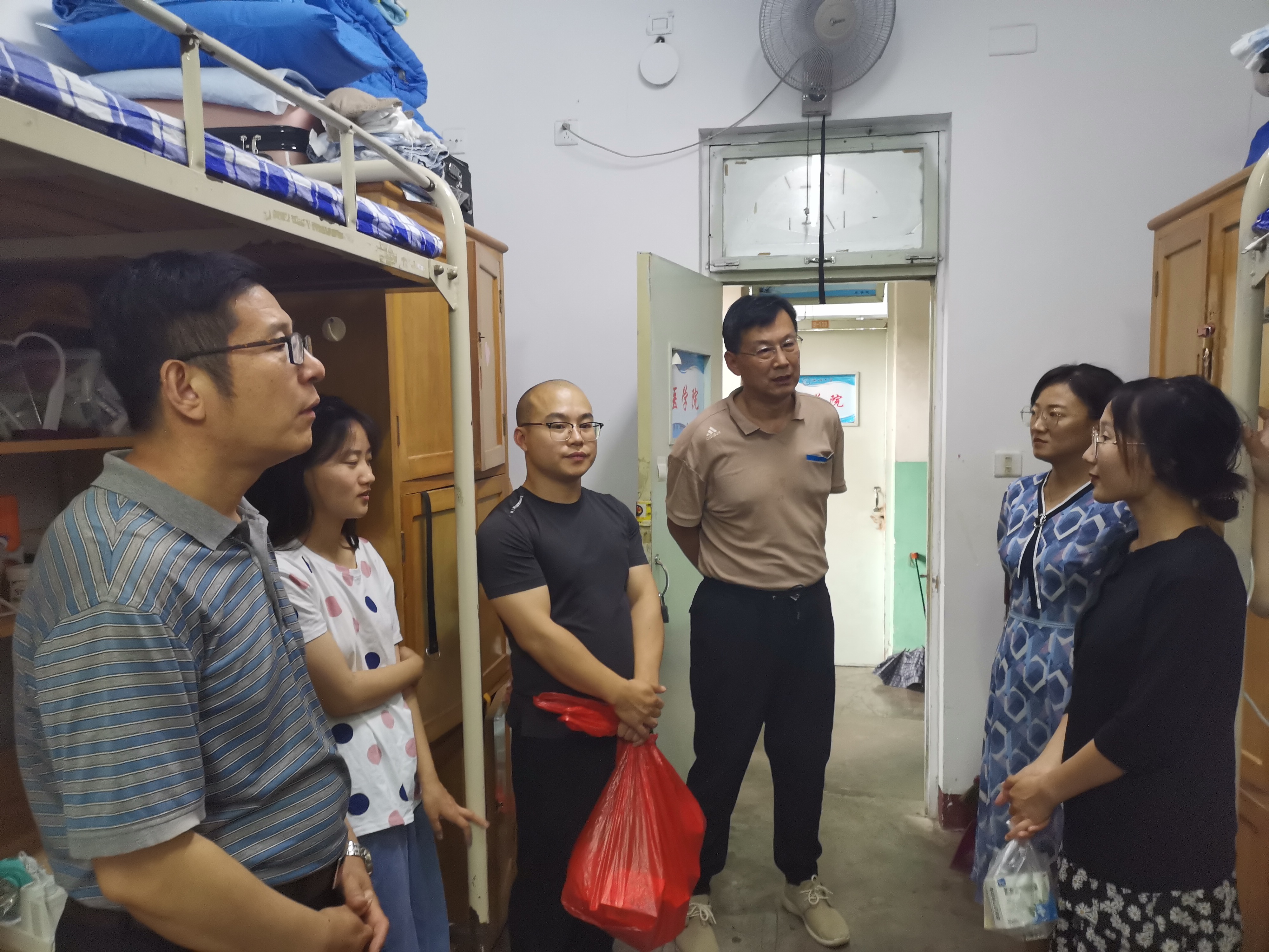 近日,随着气温逐渐升高,在校学生的身心健康牵动着医学院领导和老师的心。6月9日下午,医学院党总支书记朱奇带领学院全体辅导员、班主任深入学生宿舍走访慰问,为学生送去避暑物品,切实了解学生宿舍生活情况,关心学生学习生活。