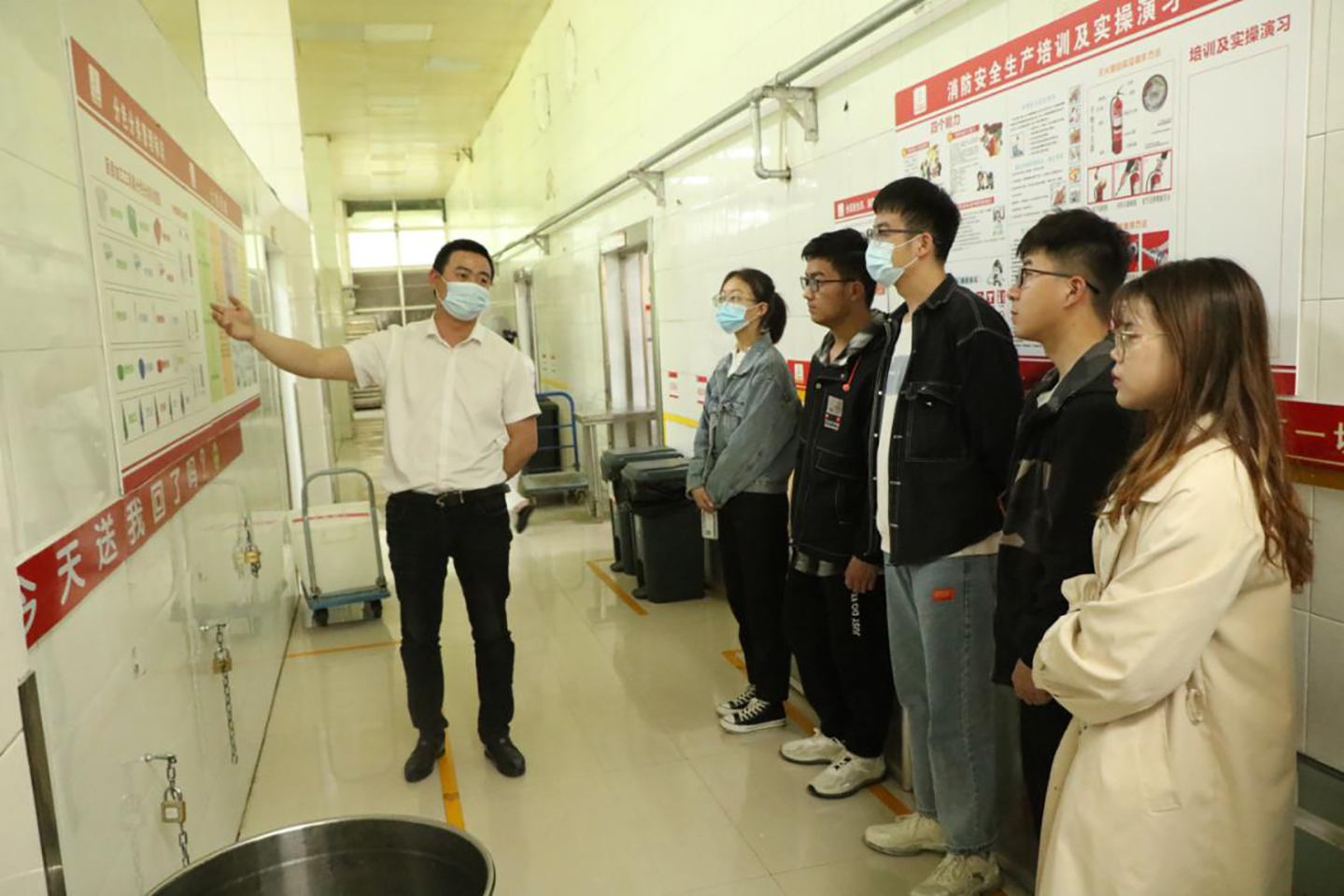 活动过程中,同学们认真倾听负责人讲解餐厅的工作分配、消杀记录、消防保障流程及每一个后厨操作间的作用,并了解了食品采购渠道与餐具清洁过程等,对餐厅的卫生环境进行了深入观察与检验。井然有序的工作流程和干净整洁的食材和餐具,让大家体会到自己的饮食环境是安全可靠的。
