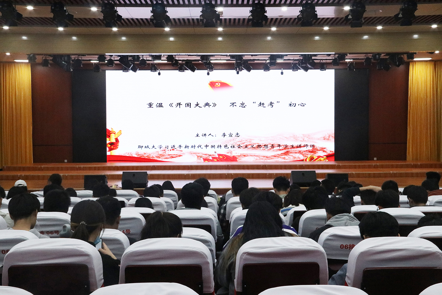 我校习近平新时代中国特色社会主义思想青年学生宣讲团团长李宣志就党的三次重大赶考精神及其当今体现等五个方面做了具体阐述,将赶考精神与十九届五中全会的九大远景紧密联系,引发同学们的深刻思考。大家一同观看了《开国大典》,影片中七十年前史诗般的场景清晰再现,凝固的时间再度流动,正面再现共和国多党合作和政治协商制度从诞生到确立这一重大历史事件,直击观影人员内心。