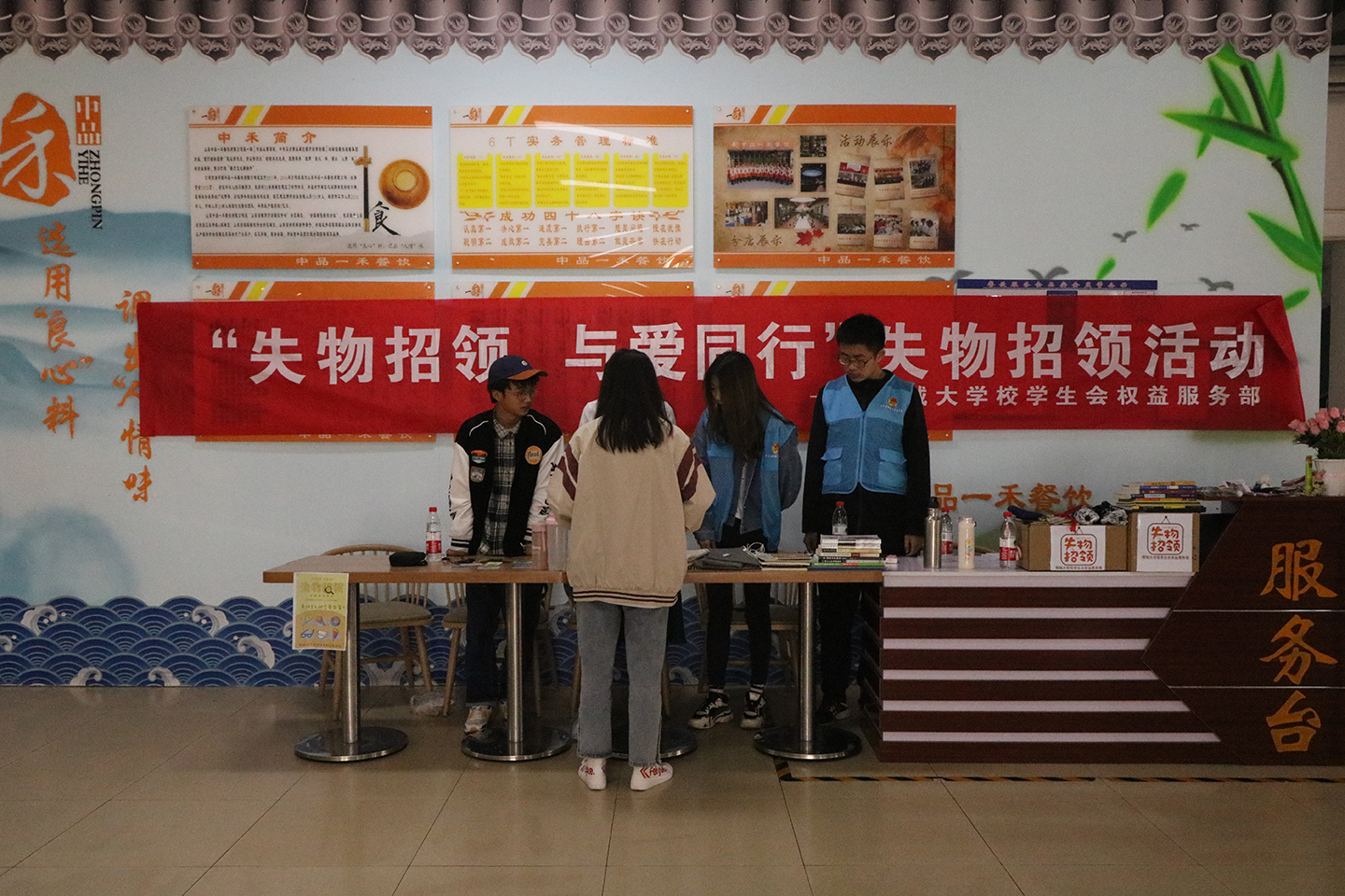 为使青年学生更多地了解失物招领平台,扩大平台影响力,给同学们的日常生活带来更多便利,4月10日-11日,校学生会权益服务部于东校区翰苑餐厅与西校区雅苑餐厅举办“失物招领,与爱同行”失物招领与捐赠活动。