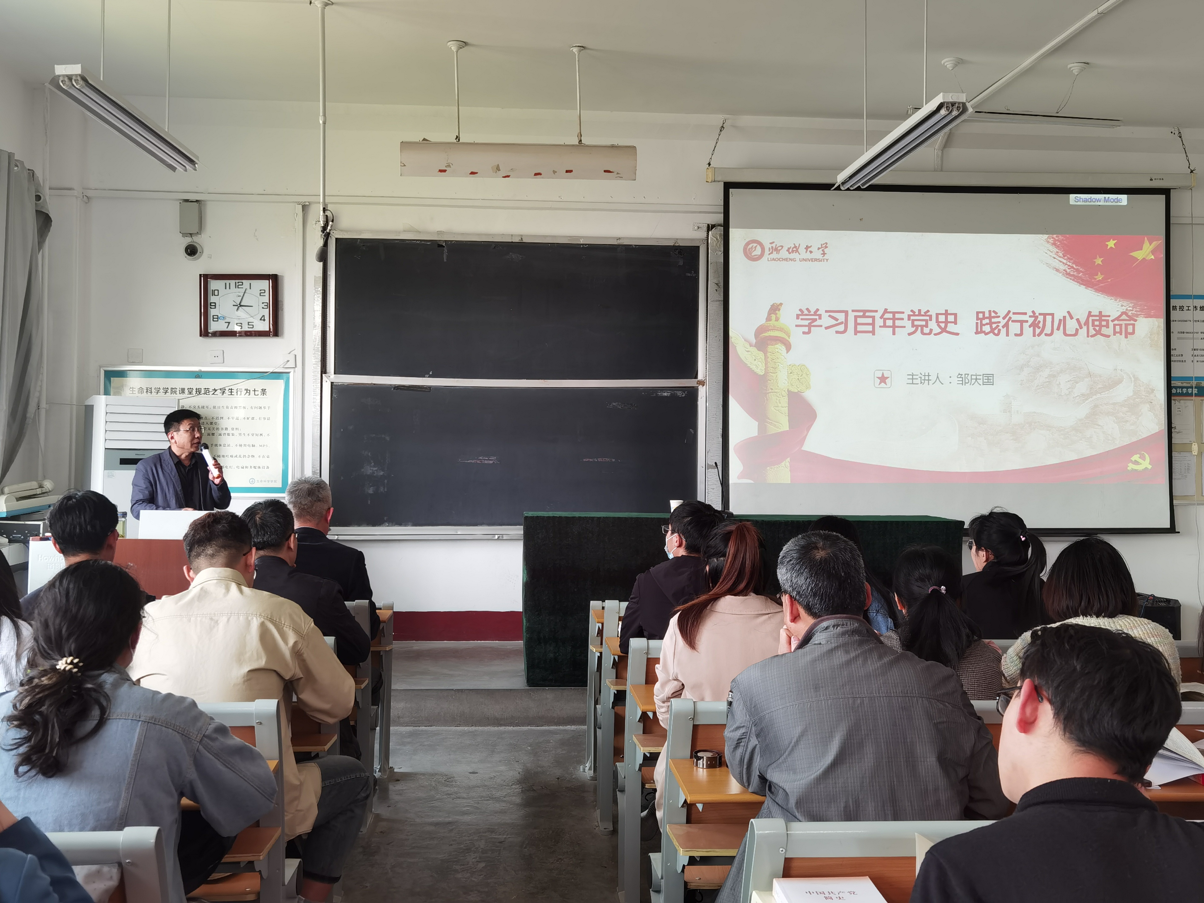 主讲人邹庆国围绕“开展百年党史学习教育的重大意义”,“了解党的百年奋斗历程和历史贡献”,“深刻把握开展党史学习教育的重点”和“贯彻落实开展党史学习教育的要求”四个方面展开宣讲。邹庆国谈到,中国共产党走过百年光辉历程,立志于中华民族千秋伟业,百年恰是风华正茂,而中国革命历史是最好的营养剂,因此,广大党员要加强对党史的学习,始终保持与人民群众的联系,全面宣传党的历史,树立正确党史观,坚持实事求是,发扬经验,始终保持建党时的奋斗精神,才能在学习领悟中坚定理想信念,在奋发有为中践行初心使命。邹庆国联系社会实际,立足时代之基,结合具体事例,对党员提出殷切期望,希望党员可以通过此次学习,进一步深化对党的性质和宗旨的认识,始终保持马克思主义政党的鲜明性。随后,张金保发表讲话,要求学院党员们要解决“无担当”、“无作为”等行为,艰苦奋斗,培养为民服务孺子牛、创新发展拓荒牛、艰苦奋斗老黄牛的“三牛精神”,不断推动学院高质量发展。