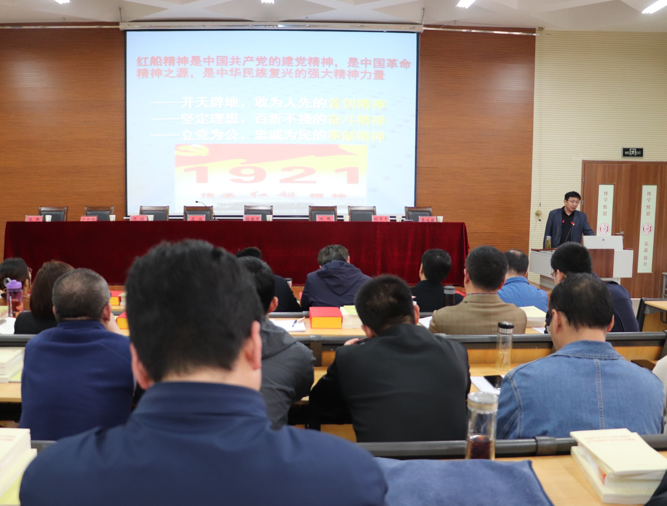 本次报告会以“弘扬红船精神,牢记初心使命”为主题。邹庆国提出要将党史教育内化于心、外化于行,做到学史明理、学史增信、学史崇德、学史力行。他用生动的语言讲述了瞿秋白的故事来阐明艰苦是相对的,奋斗是永恒的。他从开天辟地、敢为人先的首创精神,坚定理想、百折不挠的奋斗精神,立党为公、忠诚为民的奉献精神三个方面来阐述习近平总书记提出的红船精神的内涵。同时,他还表示广大党员应该以简洁对复杂,以纯洁应万变,以民心为我心,以廉洁成大节。参会党员纷纷表示要以革命先辈的崇高精神来鞭策自己,唤醒红色记忆,铭记光辉历史,汲取精神营养。
