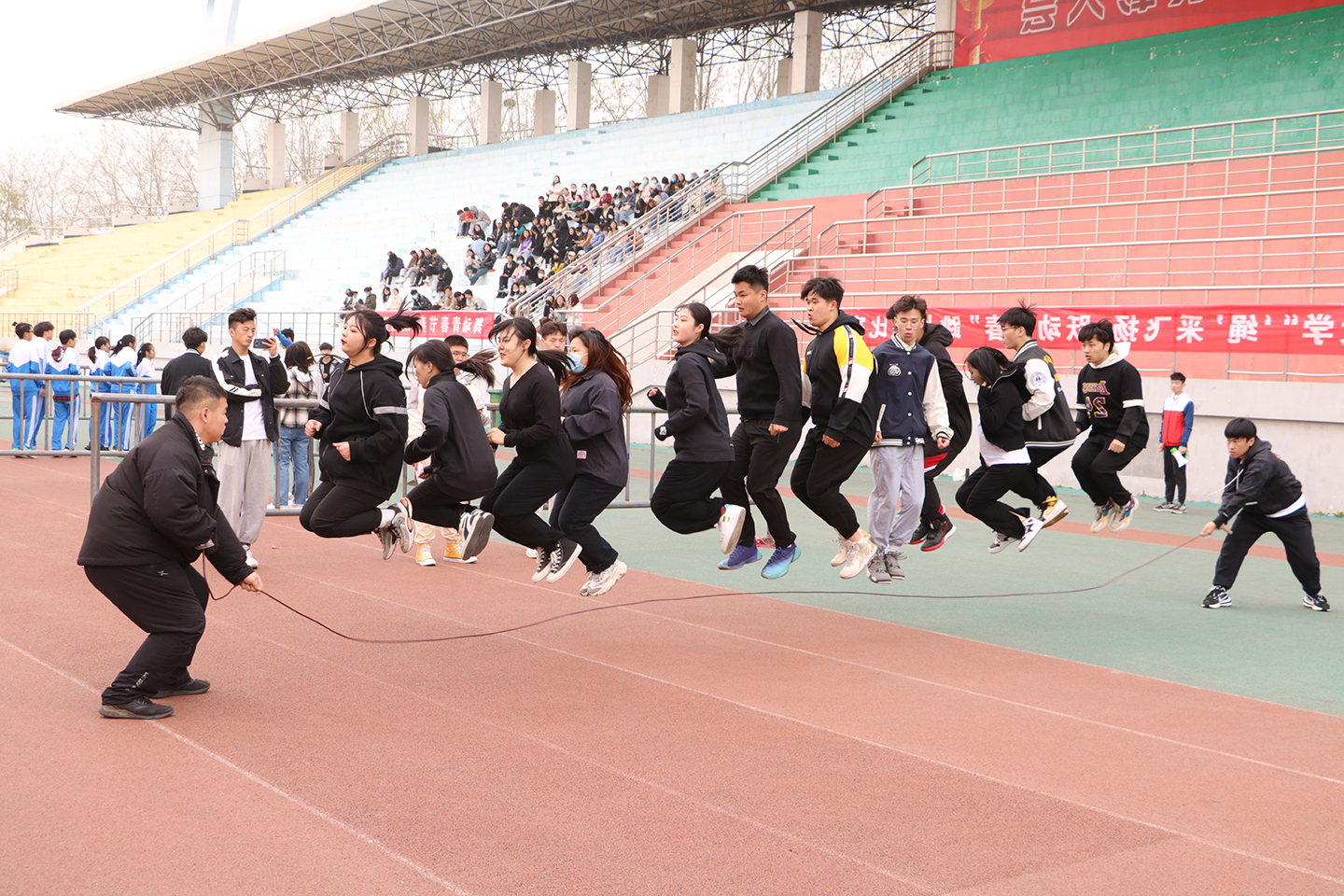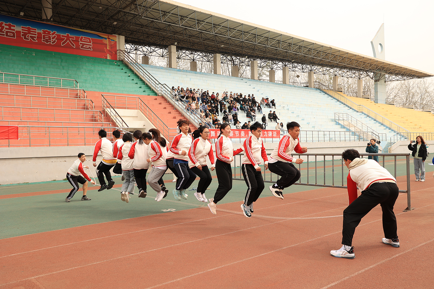 为充分落实“三走”策略,促进校园阳光体育运动开展,丰富校园精神文明建设,3月20日下午,由校团委主办、校学生会承办的“‘绳’采飞扬,跃动青春”跳长绳比赛于西校区南田径场精彩上演,经过层层选拔,22个学院代表队进入决赛进行角逐。