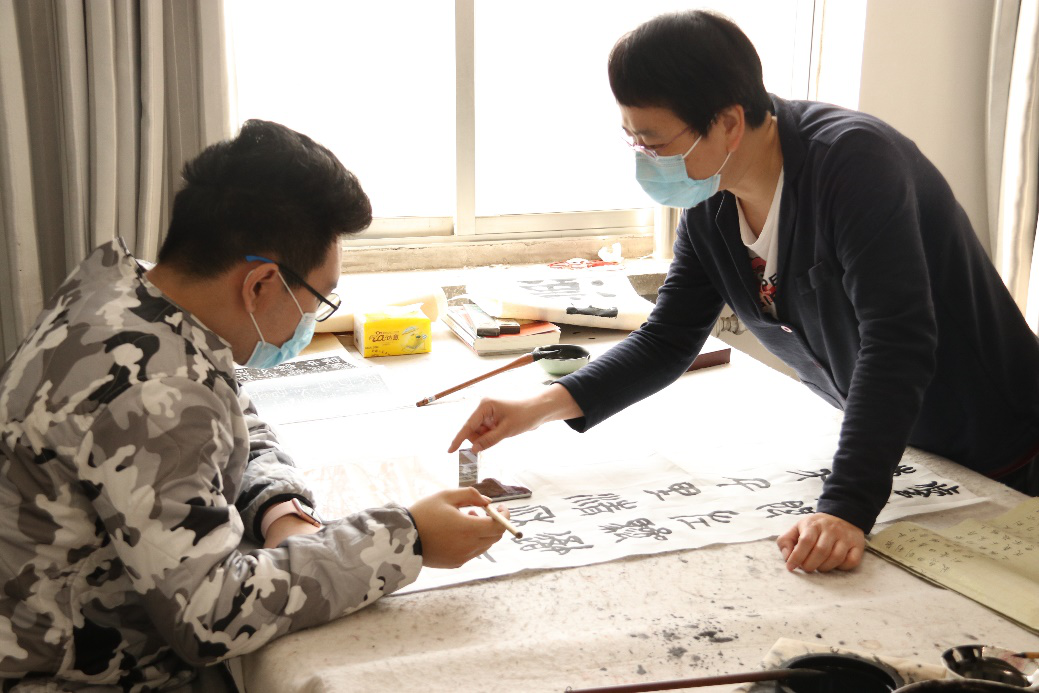 我校书法专业教师方建光、王伟对学生进行赛前指导。两位老师边讲解书法知识和技能要点边亲自书写示范,参赛学生认真学习领悟字体的书写要旨,在领悟书法家丰富多彩的精神世界和艺术才华的同时,仔细斟酌并不断完善自己的书法作品。