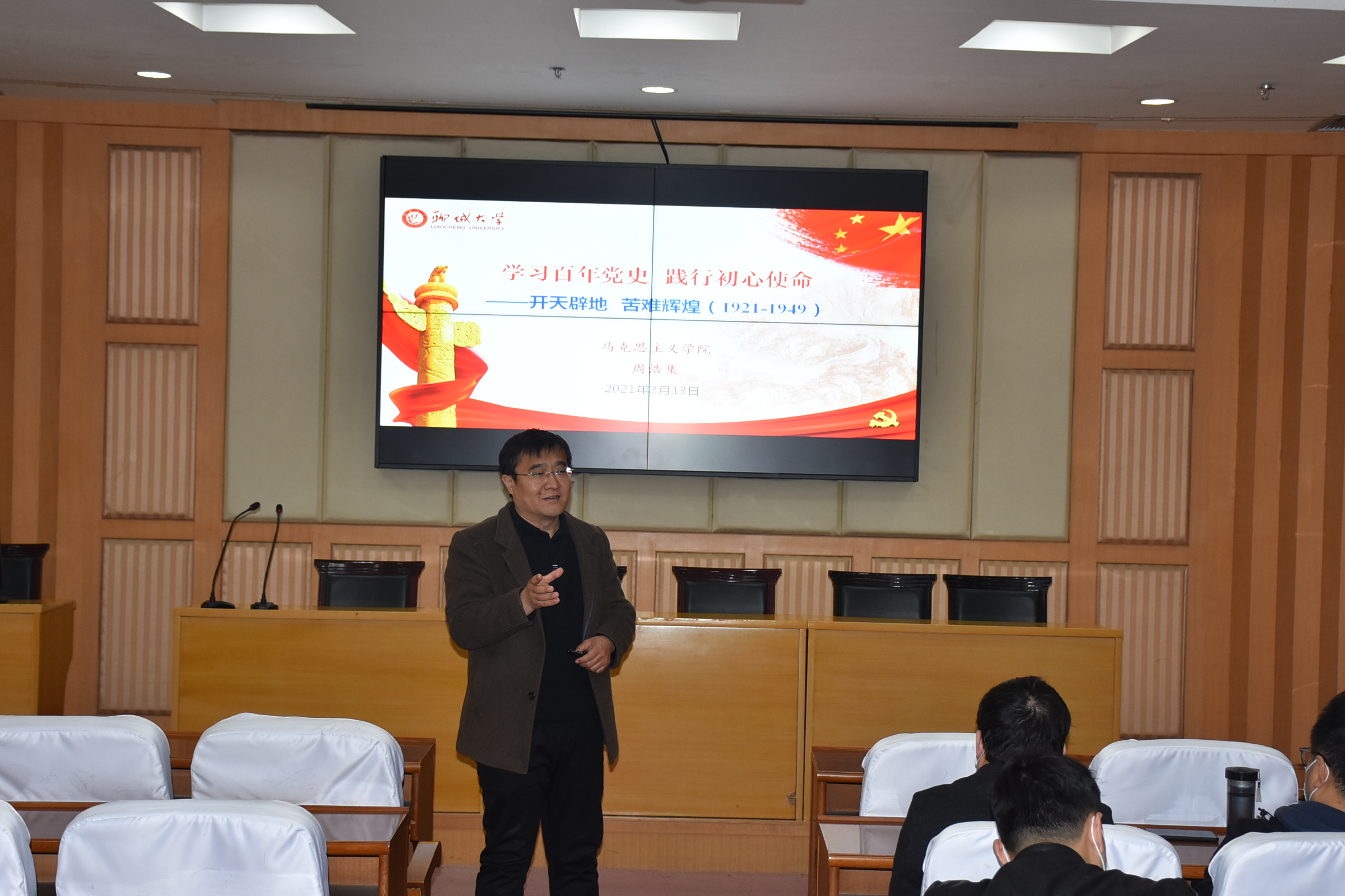 3月12日,新入职教师“学习百年党史,践行初心使命”党史学习教育报告会在西校区图书馆小报告厅顺利举办,政治与公共管理学院教授邹庆国、马克思主义学院副教授周浩集先后作主题报告,报告会由党委教师工作部主办。这是我校举办的首场党史学习教育报告会,2020年新入职教师100余人聆听报告。