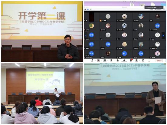 为有效防控新冠疫情,阻断疫情向校园蔓延,利用疫情特殊时期和特殊情境加强学生教育,引导学生树立正确观念、养成良好习惯,2月27日,政治与公共管理学院迎来“开学第一课”,辅导员徐娜、于进、程德香、朱晓涵分别担任主讲人。