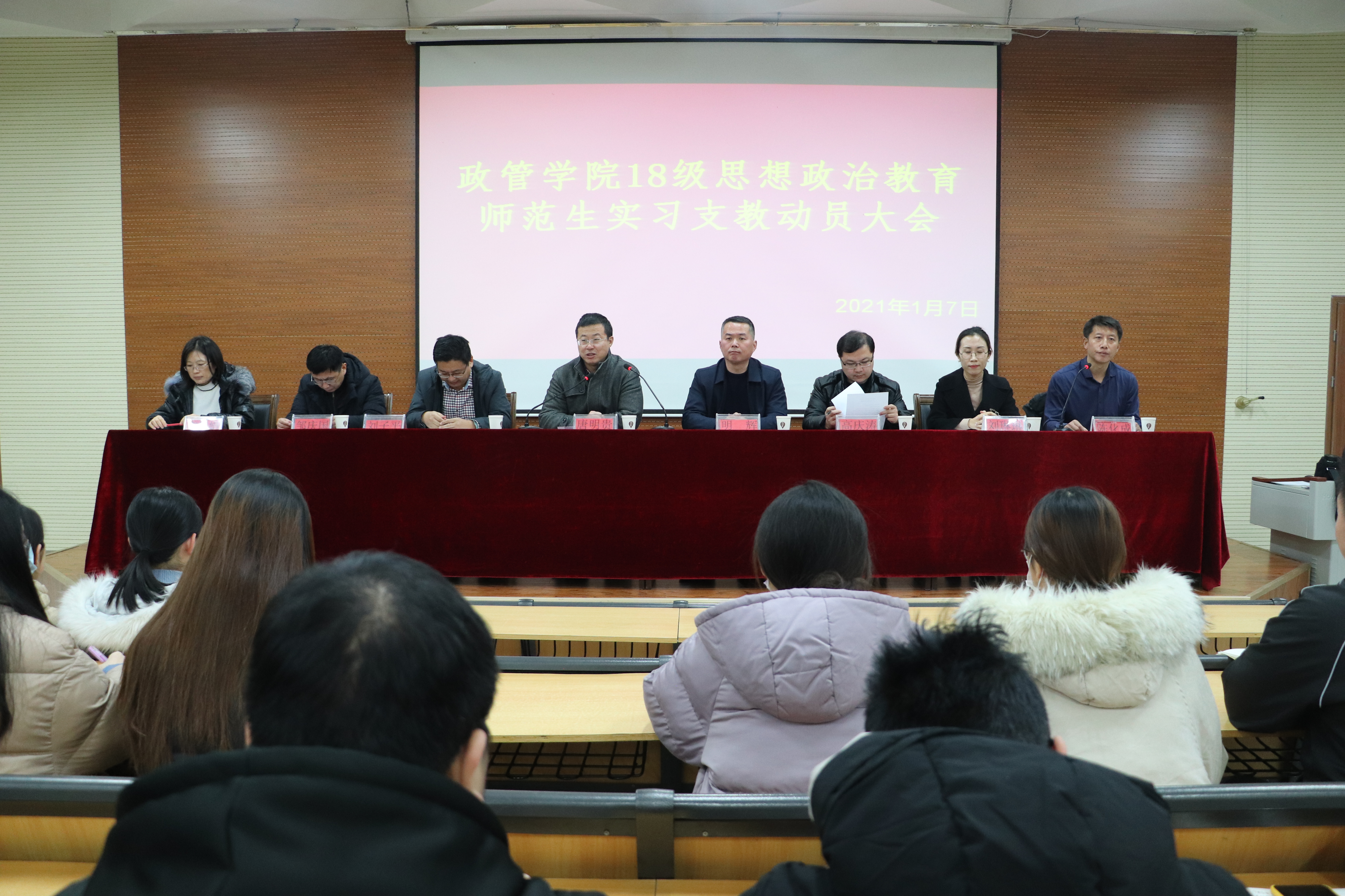 为贯彻落实聊城大学关于做好2021年上半年师范生实习支教工作的通知,1月11日,政治与公共管理学院于东校区6#C106举行18级思想政治教育师范生支教动员大会。政治与公共管理学院院长唐明贵,党总支副书记、副院长明辉,副院长刘子平以及邹庆国、高庆涛、刘琳琳、李梅娟等指导老师,会议由陈化成老师主持,18级思想政治教育专业全体同学参加。
