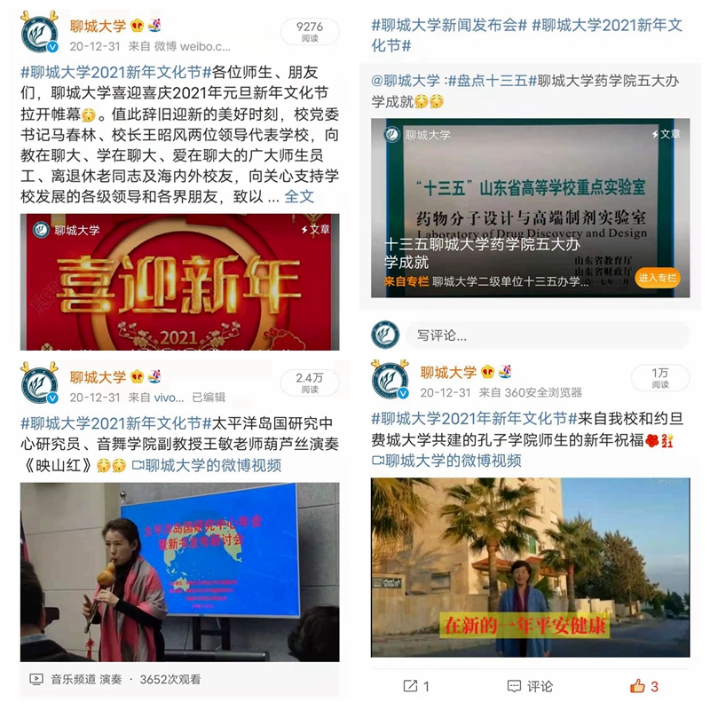 2020年12月31日晚,聊城大学2021年网络新年文化节在学校官方微博拉开了帷幕。
