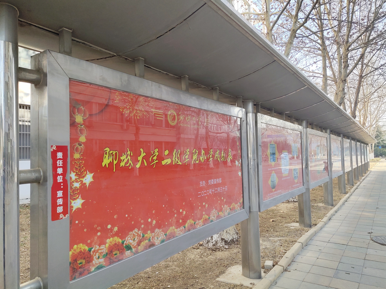 线上活动的同时,聊城大学二级学院十三五办学成就专题展览在东校慧智楼前宣传栏同步展出。
