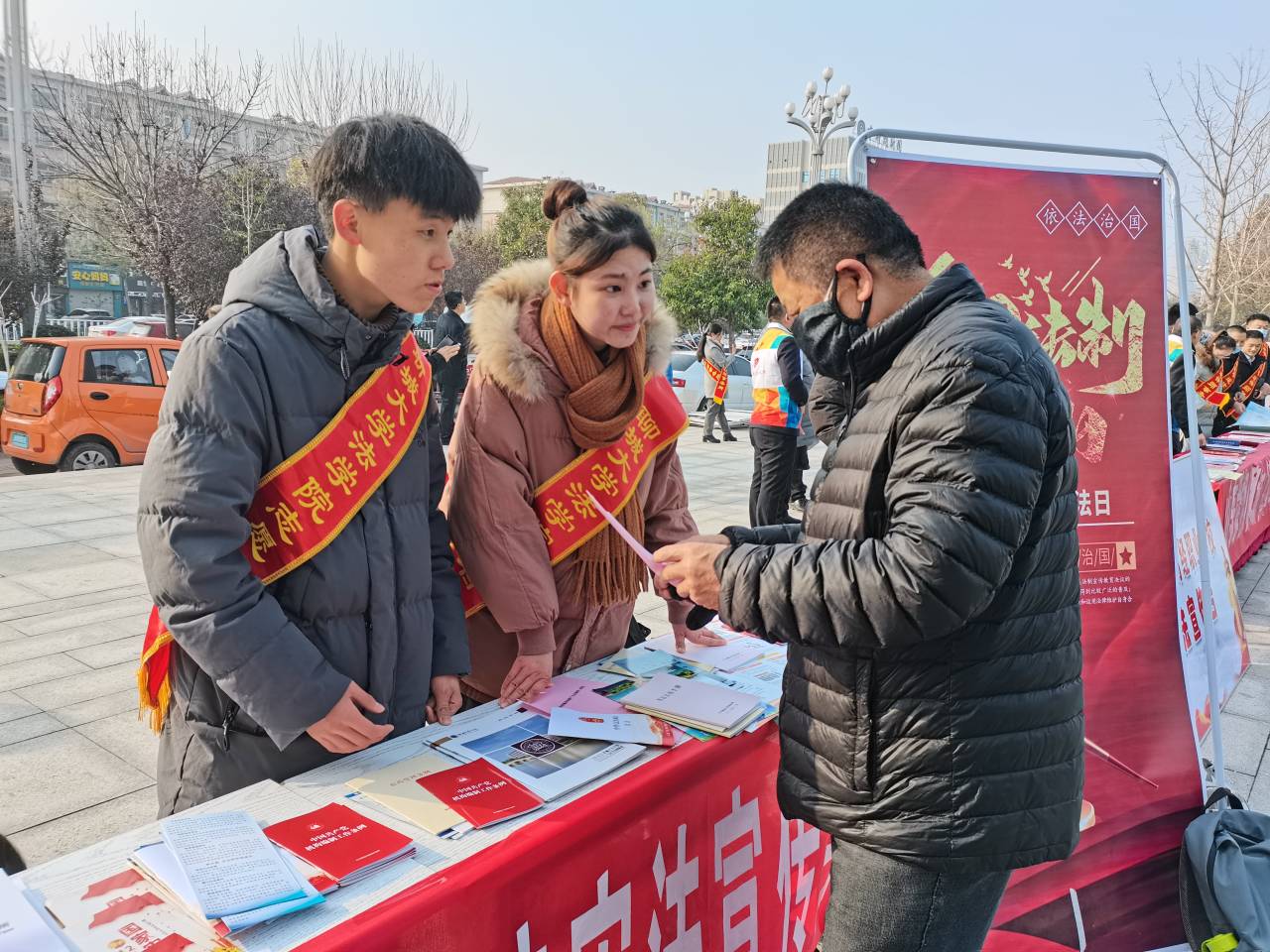 国家宪法日是贯彻依法治国基本方略的重要纪念日,也是全民的宪法“教育日、普及日、深化日”,12月4日,法学院志愿者联合市中级人民法院、区司法局等单位于聊城市市民活动中心共同开展普法宣传活动。聊城市委常委、政法委书记、市委依法治市办主任王彤宇,市政府副市长、市公安局长成伟,市政协副主席马保杰,市检察院检察长王钦杰,市委依法治市办副主任、市司法局党组书记、局长商光胜出席活动。