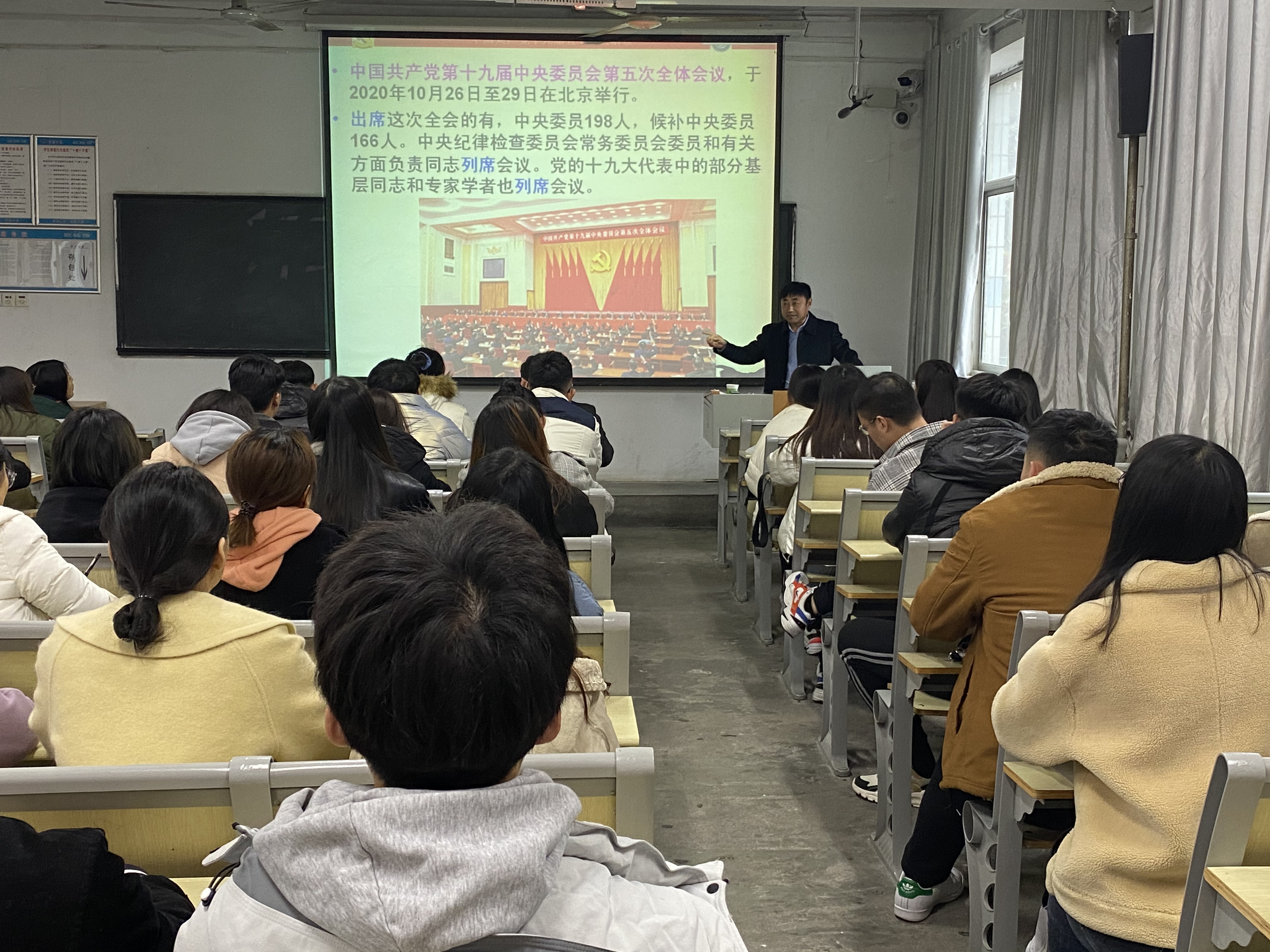 11月26日下午,美术与设计学院邀请聊城大学双拥学院院长,中国乡村研究院副院长,公共管理培训中心主任,统战研究中心常务副主任秦正为教授就学习贯彻党的十九届五中全会精神讲专题党课。会议由学院组织员许中美主持,美术与设计学院党总支副书记副院长杨庆实、全体辅导员及全体学生党员参加了本次党课学习。