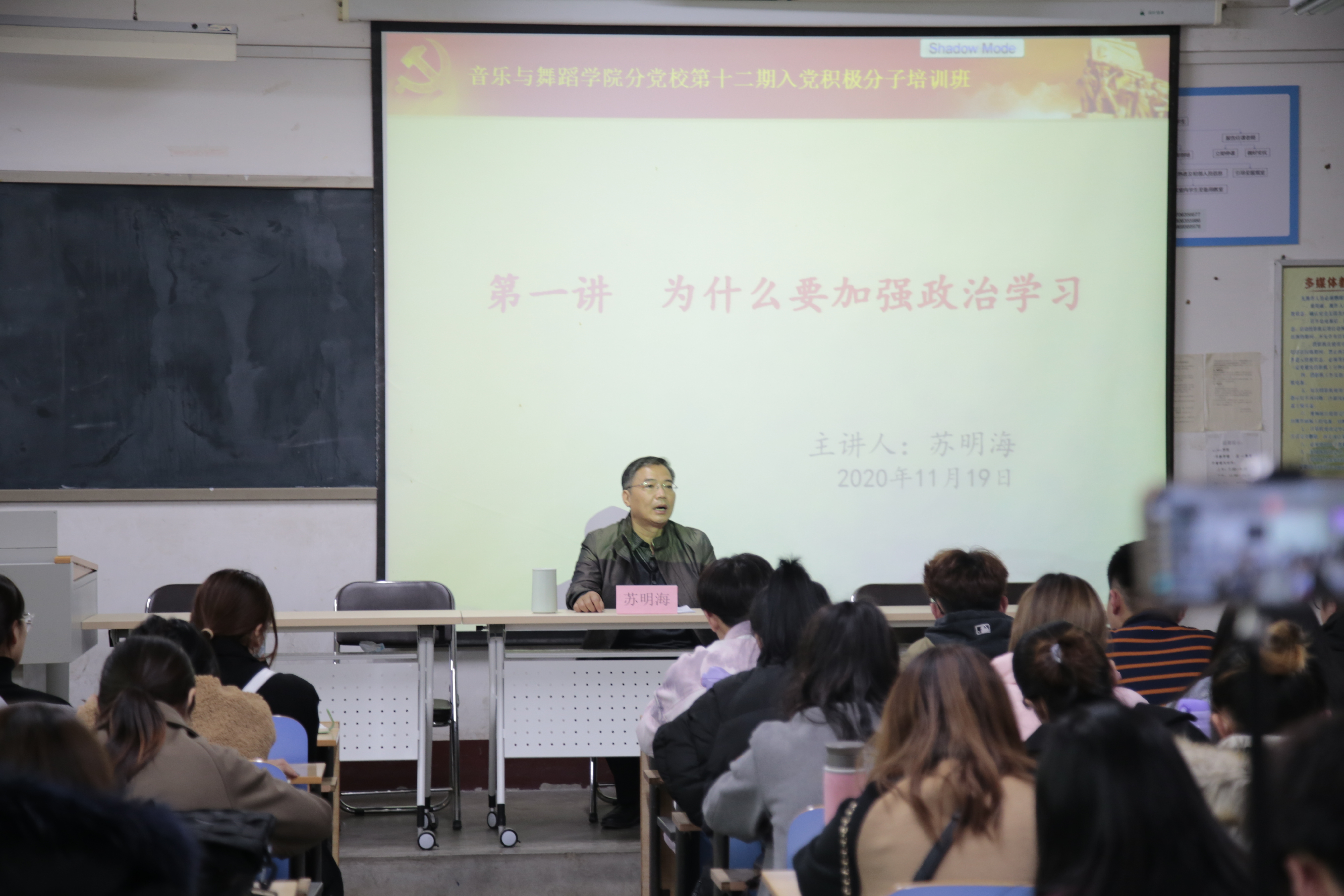 11月19日,音乐与舞蹈学院在9#308举行学院分党校第十二期入党积极分子培训班开班仪式。学院党总支书记苏明海,副书记、副院长张进军,教工党支部书记潘佩佩,学生党支部书记梁建新与全体入党积极分子一起参加了仪式,仪式由学院专职组织员王立主持。
