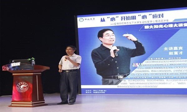为了更好地服务大学生心理健康,帮助大学生、研究生快速适应疫情防控常态化形势下的学习、生活模式,实现心理上、思想上“复位”,9月10日,由聊城大学学生工作处部主办、传媒技术学院承办的“新学期,从‘心’起航”聊大阳光心理大讲堂活动于综合实验楼演播厅举办。此次心理讲座由学校心理健康教育与咨询中心主任赵富才教授主讲。