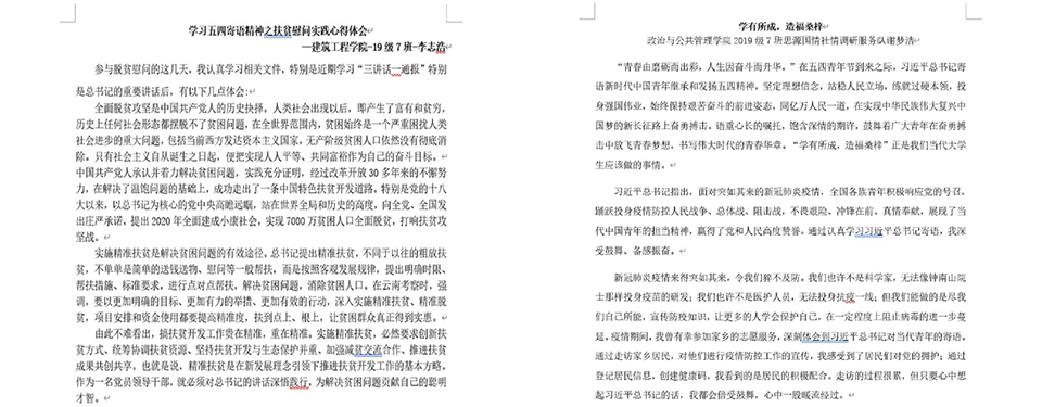 今年是脱贫攻坚的决战决胜之年,我校青年深入一线走访开展调研,扎根基层感悟时代发展。政治与公共管理学院谢梦洁,跟随家乡扶贫办工作人员的脚步,前往贫困村民家中开展结对帮扶,并积极参与当地图书室图书分类工作,指导贫困儿童借阅书刊;建筑工程学院李志浩深入陕西村落,亲身感受贫困户的生活环境,通过走访详细调研当地贫困家庭现状,并尽己所能向贫困户送去慰问物资,深切感受到了新中国成立以来取得的历史性成就,以实际行动助力脱贫攻坚。