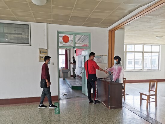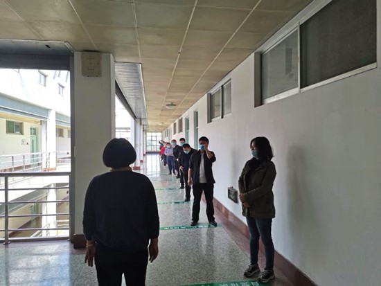 此前,法学院防疫工作领导小组将聊城大学整体工作部署与法学院工作实际情况相结合,制定《聊城大学法学院新冠肺炎疫情防控工作方案》《聊城大学法学院突发新冠肺炎疫情应急预案》及《聊城大学法学院春季学期防疫演练方案》等一系列文件。培训会上,根据这一系列工作方案,张华筠、杨道波带领全体教职工于10#C620进行“开学大练兵”,模拟学生进入教室流程,每两个教职工间隔2米列队,由专门人员在教室门口测量其体温并用酒精喷雾为其消毒。而后全体教职工对学院办公区域、各个教室、学生宿舍进行垃圾清扫和卫生消毒杀菌工作。