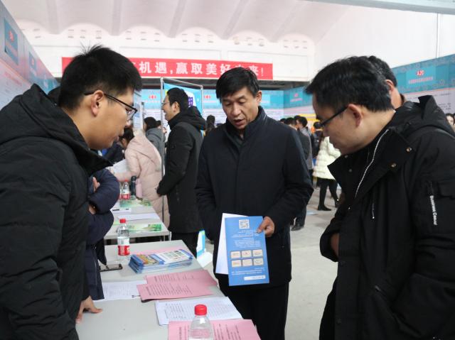 招聘会现场人潮涌动,热闹非凡,同学们或三两成群地小声交谈,或认真阅读各单位的招聘展板。赵明吉与各学院领导、老师于现场与前来咨询的学生进行亲切交谈,详细了解招聘单位的招聘情况,仔细聆听同学们的就业意愿,为即将面临就业的学生提供建议。各企业负责人耐心解答前来咨询同学提出的就业报名条件、对口专业、相关待遇等问题,详细介绍公司的发展历程、发展方向及人才需求等内容,让同学们对招聘单位有了深入了解。