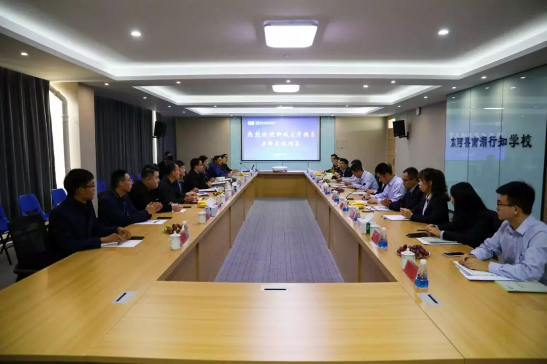 东阿县南湖行知学校是山东271教育集团旗下的一所现代化学校,涵盖小学、初中、高中各学段学生,学校从2018年开始招生,目前在校生规模6000余人。南湖行知学校执行校长王建磊、副校长王沛栋、秦杰及我校优秀毕业生代表等与考察交流的各位老师进行了座谈交流。