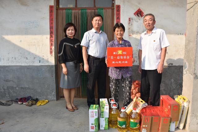 仪式结束后,美术学院学生党支部“美·益角”基金购买的食用油、大米、牛奶等慰问品,与会人员一同先后对侯营镇所辖孙庄村的新中国成立前老党员张继全,以及省定贫困村孙楼村的五户经济困难家庭进行了走访慰问,并详细了解他们的身体、生活状况及困难。