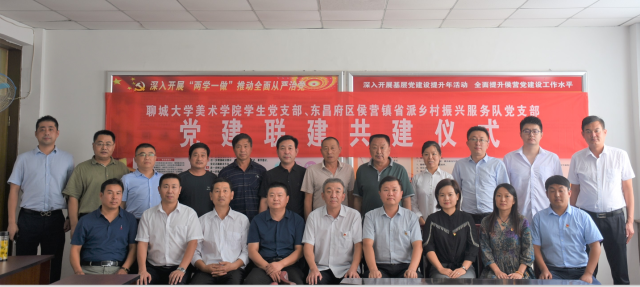 为进一步创新基层党建工作载体,提升党建工作整体水平,切实推进过硬党支部及全国党建工作样板支部建设,9月29日下午,美术学院学生党支部、东昌府区侯营镇省派乡村振兴服务队党支部联建共建仪式在东昌府区侯营镇政府会议室举行。美术学院学生党支部全体委员、学生党员代表,东昌府区侯营镇省派乡村振兴服务队党支部全体成员,东昌府区侯营镇政府主要负责同志20余人一同参加仪式。仪式由侯营镇副镇长段瑞鹏主持。