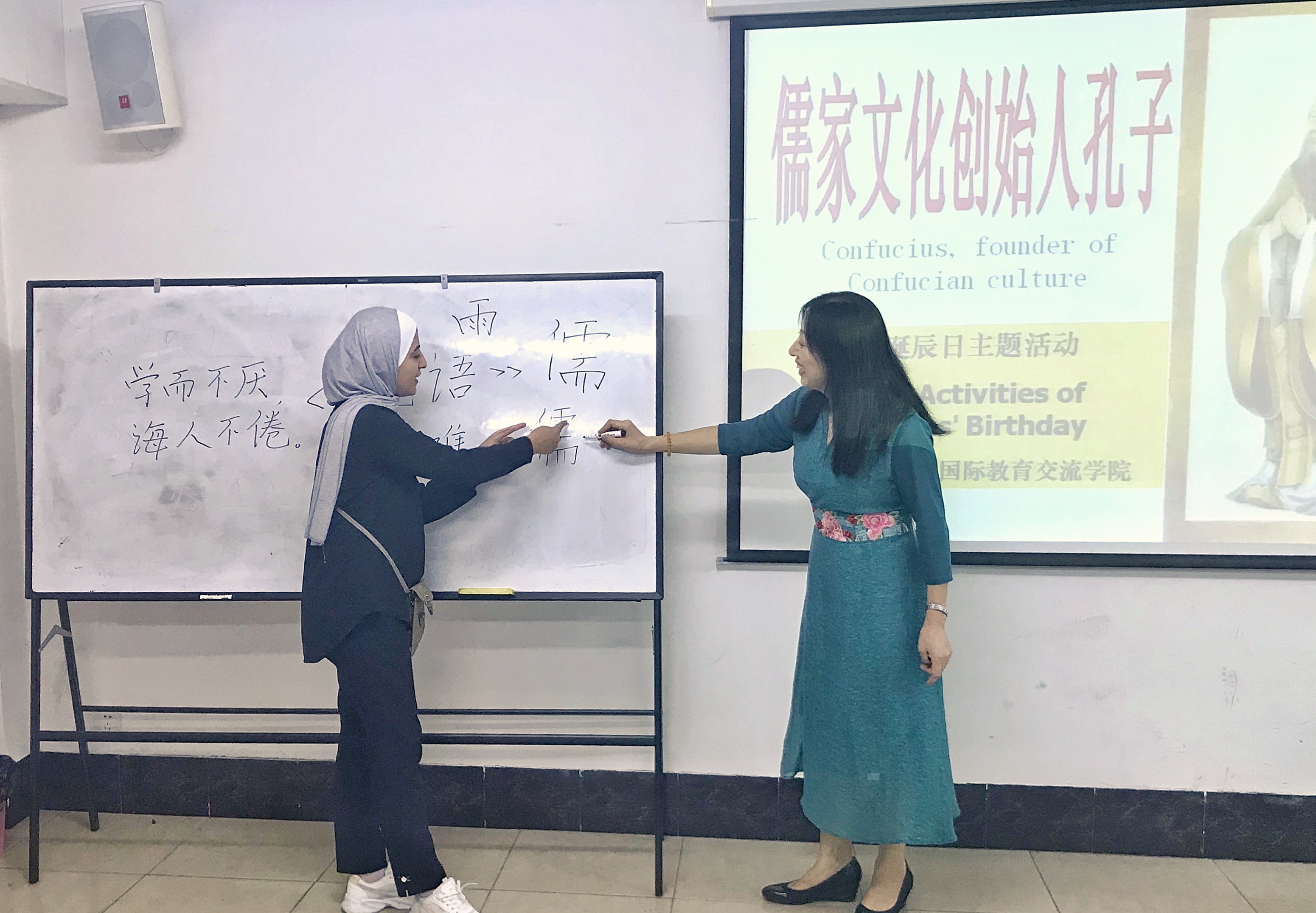 9月28日,是孔子诞辰的2570周年纪念日。为让留学生近距离感受中国文化魅力,在孔子诞辰纪念日来临之际,国际教育交流学院于西校区留学生教育中心开展“孔子与儒家文化”教学活动。