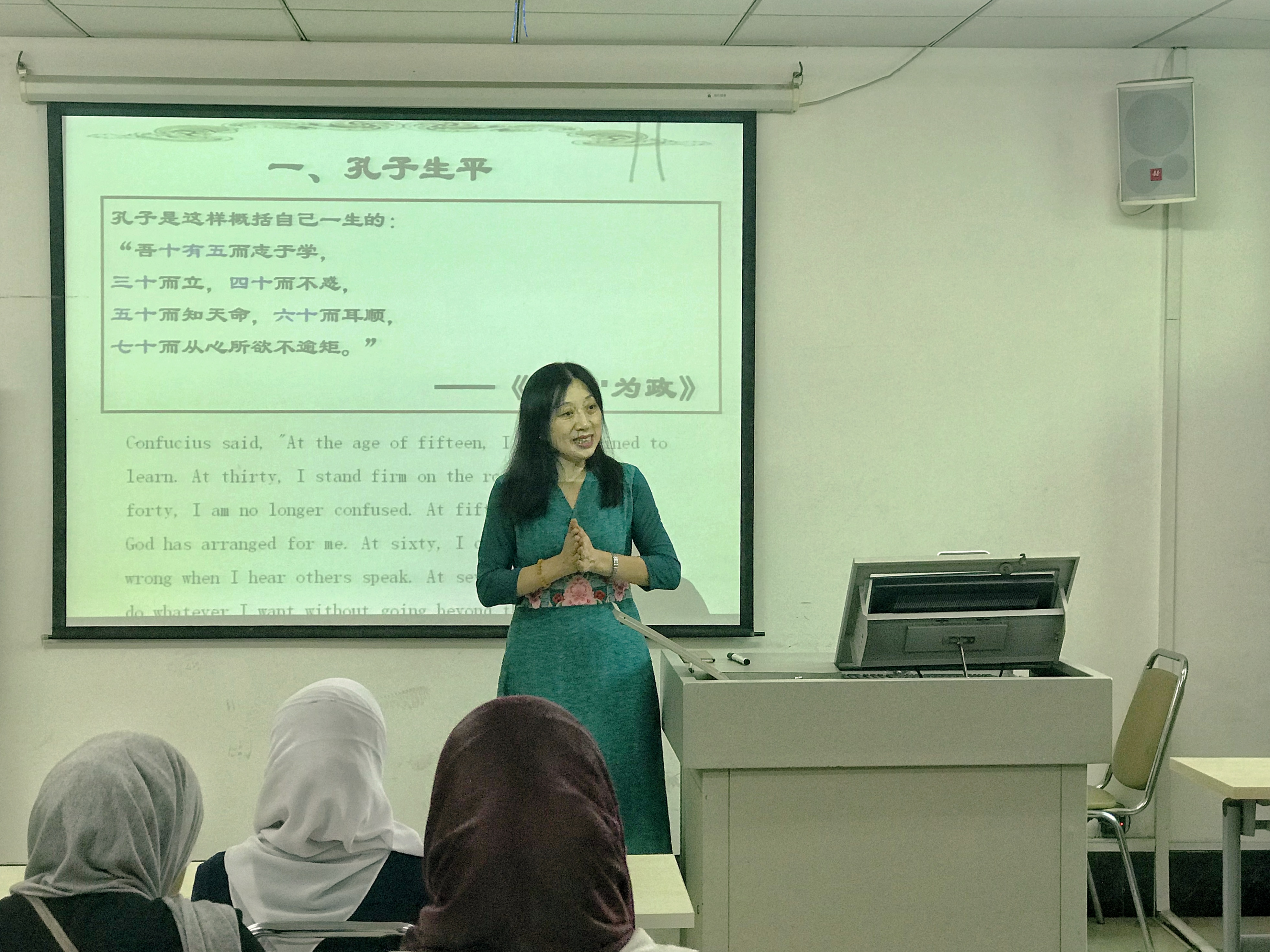 “三人行,必有我师”“学而时习之,不亦说乎”“温故而知新,可以为师矣”……留学生们走上讲台,将自己对儒家思想的理解与同学们分享。来自尼日利亚的尤斯满同学说:“我最欢的一句话是‘温故而知新’,它的意思是复习以前学习过的知识,能得到新的理解和体会。这句话对我的学习很有帮助……孔子还有其他的观点,我想以后继续学习《论语》,让它帮助我的学习。孔子是中国文化的象征,每一个学习中文的人都应该了解孔子,学习中国文化。”