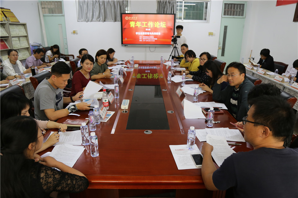 9月23日,由校团委主办、物理科学与信息工程学院团委承办的第九期青年工作论坛在西校10#c210举行。本次论坛以“学生社团管理与内涵建设”为主题展开研讨,校团委全体人员,各学院团委书记参加,校团委组织部部长乔华军主持论坛。