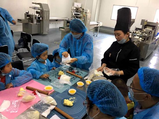 活动前,工作人员带领教职工和孩子们参观了麦趣新语食品有限公司的生产车间,了解了各式面包、糕点的生产环境和制作流程。随后,烘焙活动开始,在烘焙老师的指导下,大家按照程序揉面团、做面饼……孩子们充分发挥想象力和创造力,制作了精美的“小熊”“小礼服”“水晶鞋”“草莓”等各式各样的饼干。当饼干从烤箱拿出来的那一刻,香飘四溢,现场气氛充满了甜甜的味道和满满的爱。