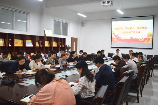 政治与公共管理学院党总支副书记、副院长季昌伟对学院“不忘初心、牢记使命”主题教育工作进行了安排部署,对学院主题教育实施方案以及工作配档表等进行了全方位的解读和梳理。