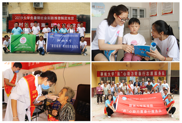 7月17日,药学院“爱在临清”精准扶贫服务队于聊城市临清县刘垓子镇尹庄村开展推普脱贫攻坚活动。队员们以法制知识与用药知识为主要内容,走上街头为村民讲解日常药品的规范服用与注意事项。与此同时,队员们来到尹庄村小学,采用课堂教学与课下解疑的形式带领学生们学习普通话的发音标准,并提出开展“人人通”推普脱贫培训班的建议。16日至19日,医学院“医”心助力青春行志愿服务队前往聊城市冠县白佛头村,为8名无牙颌和缺牙严重的老人免费制作义齿,用青春和智慧助力健康扶贫事业,在奉献中追逐梦想,在历练中感悟成长,在实践中认识国情,为农村发展、脱贫攻坚注入了新的活力。