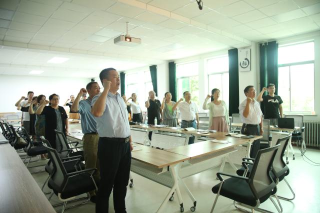 6月27日,音乐与舞蹈学院教工和学生党支部分别在学院会议室和201合堂教室开展了“学习规范 佩戴徽章 重温誓词”主题党日活动。