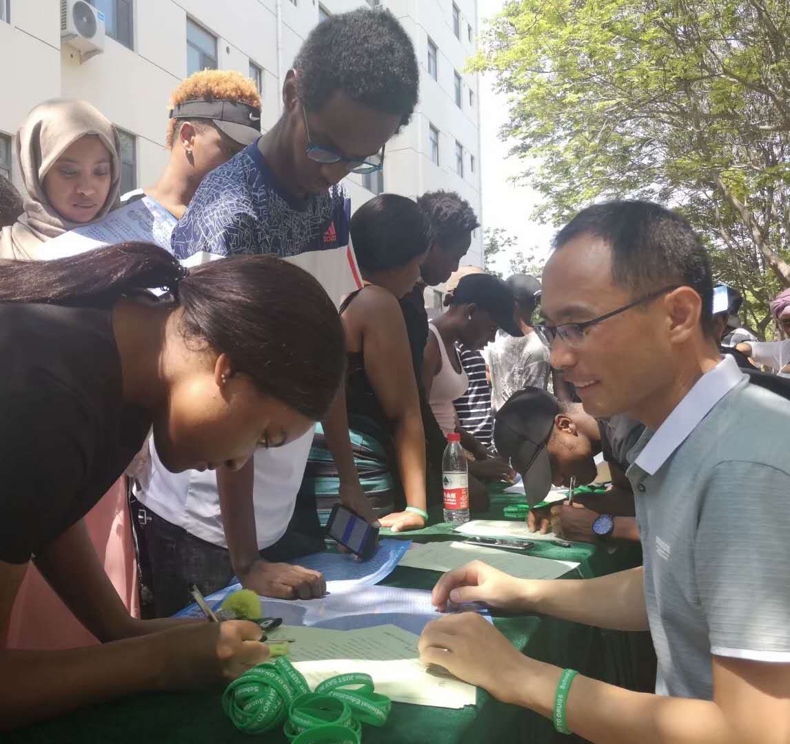 活动中,每一名国际学生都佩戴了“SAY NO TO DRUGS”手环,郑重签署了聊城大学国际学生“热爱生命,拒绝毒品”承诺书,在活动背景墙上签下自己的名字,倡议全世界的人们携起手向毒品宣战,保卫每一个人的健康,共建共享美好的生活。