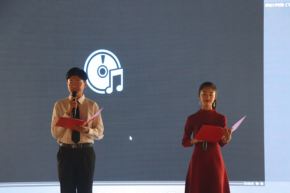 政治与公共管理学院陈彤、文学院李宝田以一首《明天,我们毕业》的动情朗诵献给即将走出校门2019届毕业生。“最后一堂课,是和老师的告别;最后一场考试,是和学业的告别;最后的毕业论文答辩,是和学生生涯的告别”“毕业不是船儿归港,而是扬帆出航;毕业不是学习的终点,而是新生活的开始。在离开母校之前留下灿烂的微笑,留下深情的怀念,带上大学时代的最美好回忆,奔向人生新的征程”,难忘、不舍、感恩、憧憬……,深情的朗诵感染打动着现场每一位毕业生。