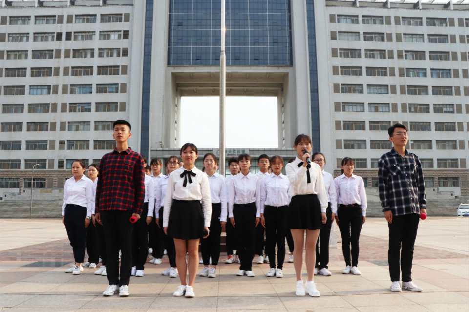 计算机学院口才与礼仪协会、旅心文学社进行诗歌朗诵《未来 你好》,在抑扬顿挫、震彻人心的声音中,全体人员感悟民族艰辛历程,铭记属于时代青年的责任担当。