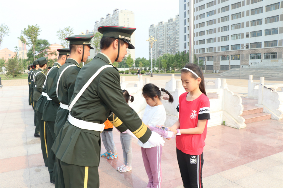 儿童是祖国的花朵、国家的希望,正值六一儿童节,升国旗仪式结束后,我校国旗护卫队队员向现场参加升国旗活动的小朋友赠送礼物,并合影留念,引导少年儿童继承红旗志,努力学习,增长本领。