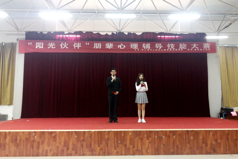 一首优美的歌曲拉开了活动的序幕,随后主持人对比赛规则进行了详细的介绍,并向在场观众阐述了朋辈心理辅导的概念。现场情景剧通过亲情友情以及学习与兴趣的平衡等不同主题来引导故事的发展,精彩展现了通过朋辈互助而达到心理协调的过程。每一个情景剧里面都有一个与众不同的故事,不同故事也给予在场观众不同的启示。有的告诫同学们大学四年转瞬即逝,要珍惜光阴,好好学习,有明确的职业规划,不断提高自身的技能;有的告诉同学们要体谅父母,勤俭节约,常怀一颗感恩之心;还有的启迪大家对待朋友,要己所不欲,勿施于人,懂得宽容与理解……