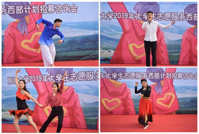 志愿者在现场分发精心制作的宣传海报、招募说明书、报名流程图、西部计划问答彩页、特色明信片等资料,各学院讲解员与现场学生热烈交流,积极引导同学们接过历届西部计划志愿者的接力棒,继续发扬“奉献、友爱、互助、进步”的志愿者精神,积极投身时代洪流,实现人生价值。组织方准备的精彩节目倾情上演,维吾尔族舞的表演者们用优雅的舞姿展现西部风情,把观众带入了一个西域神幻的异域之境;王梓源的一首《把一切献给党》唱出了新时代青年学子的心声,以青春谱写希望的旋律,以热情奏响发展的凯歌,充分展现我校青年学生参与西部计划的热情。
