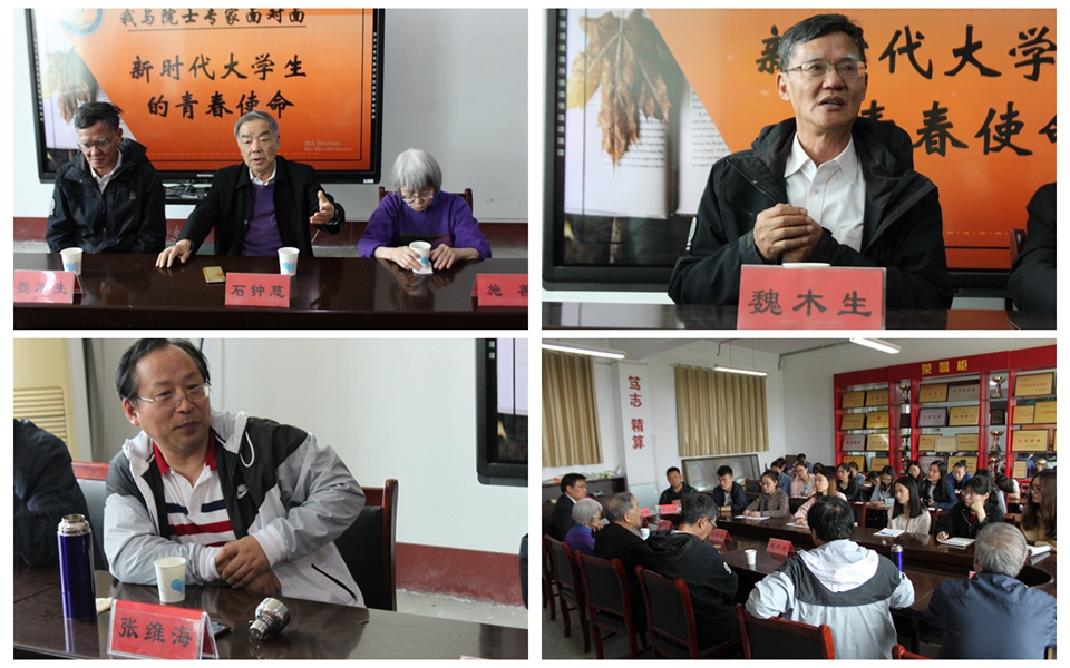 为引领新时代大学生勇担青春使命,为中华民族伟大复兴的中国梦接力奋斗,5月6日上午,数学科学学院在东校区1#教学楼419会议室举办“我与院士专家面对面—新时代大学生的青春使命”活动。中国科学院院士石钟慈及其夫人,数科院特聘教授魏木生、张维海,我校孟广武教授,科学技术处处长赵建立以及院领导受邀出席会议,数学科学学院2015级优秀学生参与此次活动。