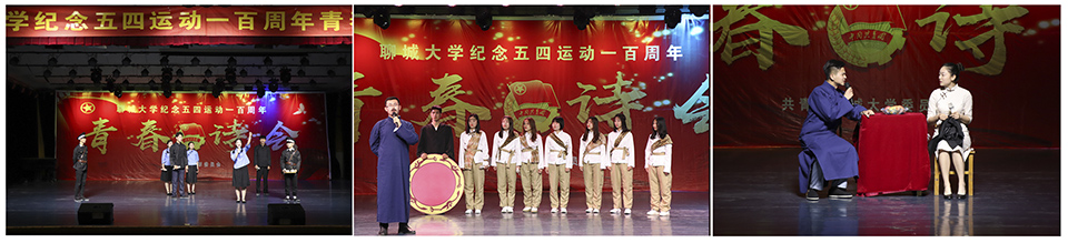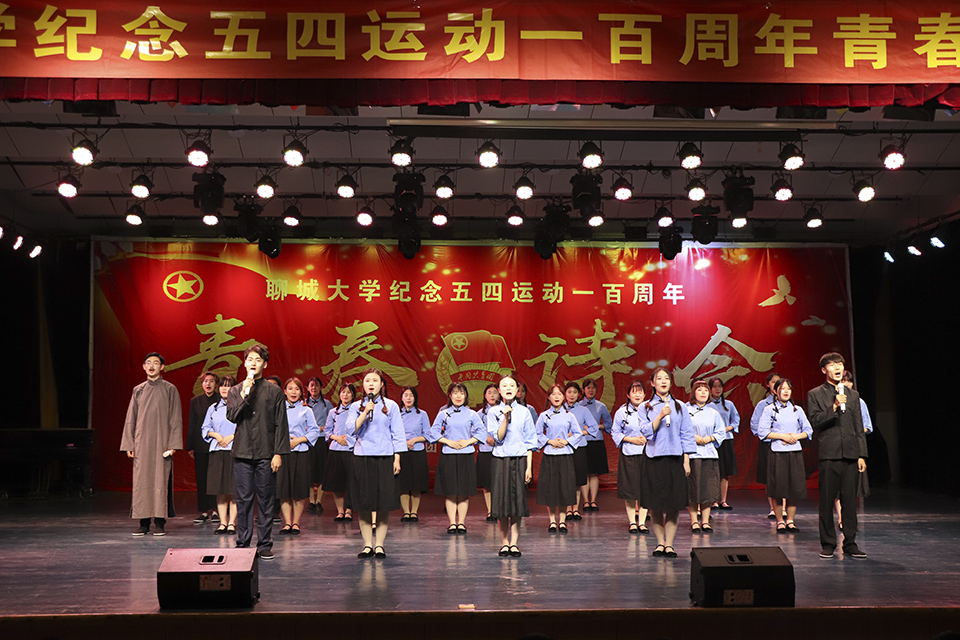 诗会共分为三个篇章,融情入诵,汇情于诗,用激昂的朗诵与真挚的诗句表达对五四先驱和革命先烈的缅怀之情,以多样的节目形式展现出聊大学生的青春风采。