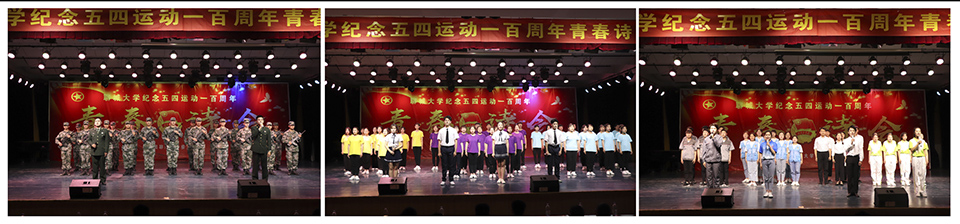 忆过去光辉历程波澜跌宕,看今朝中国青年气宇轩昂。5月5日下午,由校团委主办,文学院、校艺术团、校广播台承办的纪念五四运动一百周年青春诗会于音乐与舞蹈学院音乐厅举行。校党委常委、宣传部部长乔丙武,统战部部长刘法力,工会主席江涛,校团委书记宗传军,学生工作处副处长刘东莲,部分学院党总支副书记、团委书记、辅导员及学生代表到场参加,共享视听盛宴。