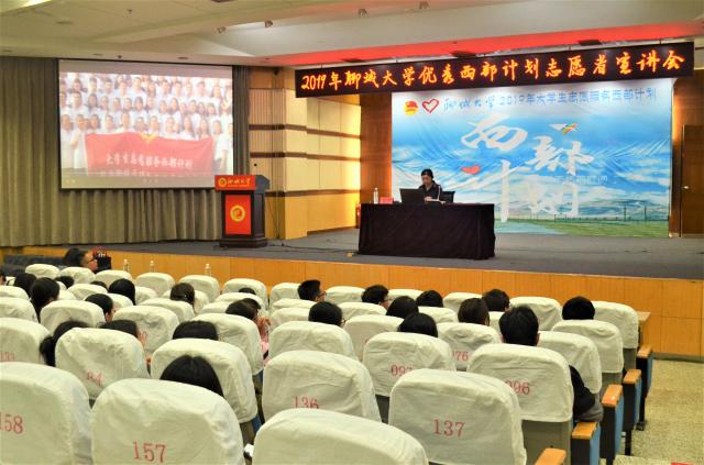 为响应团中央和团省委的工作部署,鼓励更多的应届高校毕业生报名参与西部计划,投身西部基层干事创业,4月24日,由校团委、校西部计划项目办主办,化学化工学院、美术学院、药学院、生科院、文学院、历史文化与旅游学院联合承办的2019年大学生志愿服务西部计划优秀志愿者宣讲会于西校图书馆大报告厅举行。校团委书记宗传军、校团委副书记曹娜娜,化学化工学院党总支副书记、副院长宋兴民,化学化工学院2016届优秀毕业生、曾服务于青海省委宣传部的优秀西部计划志愿者李怀振,化学化工学院2018届优秀毕业生、现服务于新疆维吾尔自治区团委的优秀西部计划志愿者王凯,以及来自六个学院的师生代表400余人出席会议。