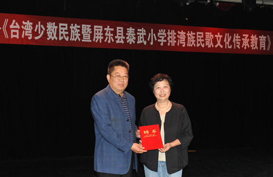 4月23日上午,中国少数民族音乐学会副会长蓝雪霏做客聊大讲坛,以“台湾少数民族音乐暨屏东县泰武小学‘排湾族’民歌文化传承教育”为题,为我校师生作了学术报告。校党委常委、副校长徐昌然参加活动,并向蓝教授颁发聘书,敦聘其为我校兼职教授。