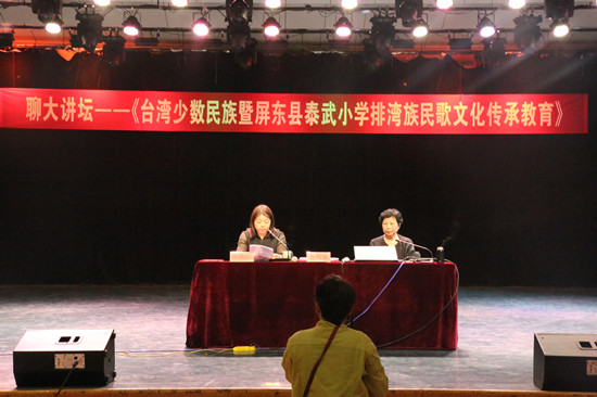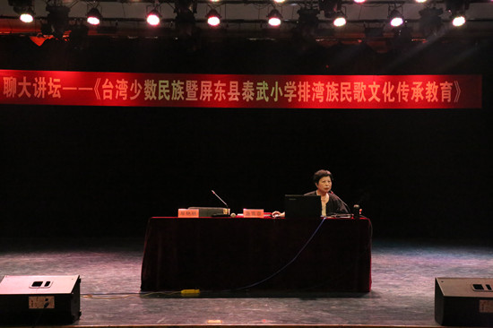 蓝雪霏教授谈到在台湾访学时因偶然中看到《排湾族tjaljayan故事音乐会》视频而对台湾屏东县泰武小学产生强烈的好奇,继而对该小学的‘排湾族’民歌文化传承教育进行了深入了研究。蓝教授发现,同西方传入中国的合唱理念不同,在这所小学里,合唱是不同声音特质的文化集合。在这所小学里,为了教唱最纯粹的传统部落歌谣,除了请部落老师来帮忙训练精英团之外,还带着孩子参加部落的丰年祭婚礼等庆典,听老人的歌唱。别有用心的野外部落文化之旅,无疑给了孩子们艺术产生原理和人性光芒的最切实最生动的轮番体验,教育孩子学会认识自己。泰武小学优秀的歌谣传承,不仅做出了自己的文化特色,还从在地文化之根延伸出国际视野。蓝教授谈到,现行教育制度对教育意义的认知设置太多羁绊,使得教育变成了政绩,教育评判维持于排序而非多元。泰武小学优秀的歌谣传承是台湾教育改革浪潮及该校整个教育改革理念实施的一个代表,它彰显了台湾人在民族文化道路上持续接力一路迅跑的勇敢。