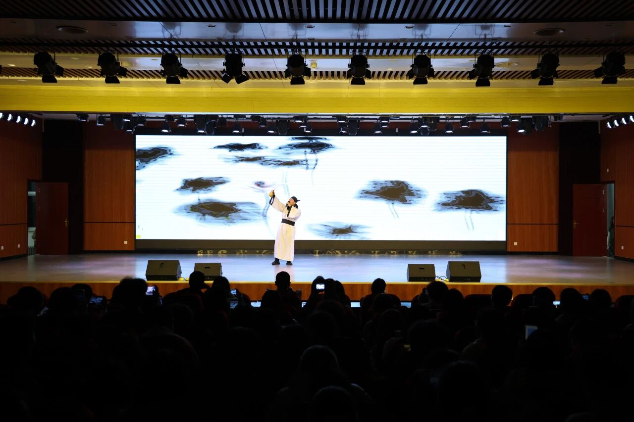 萨克斯演奏《大城小爱》以悠扬婉转的旋律,将城市烟火里的细腻温情缓缓铺陈,萨克斯的浪漫音色裹着柔软情绪,让舞台漫开治愈的氛围感。诗歌朗诵《将进酒》以豪宕的语调、洒脱的气韵,重现盛唐诗篇的磅礴风骨。朗诵者手持酒葫,时而挥臂展豪情,时而驻足凝思绪,肢体动作与诗句意境完美契合。舞台背景铺展水墨秀山图,瞬间将观众拉入盛唐酒局。