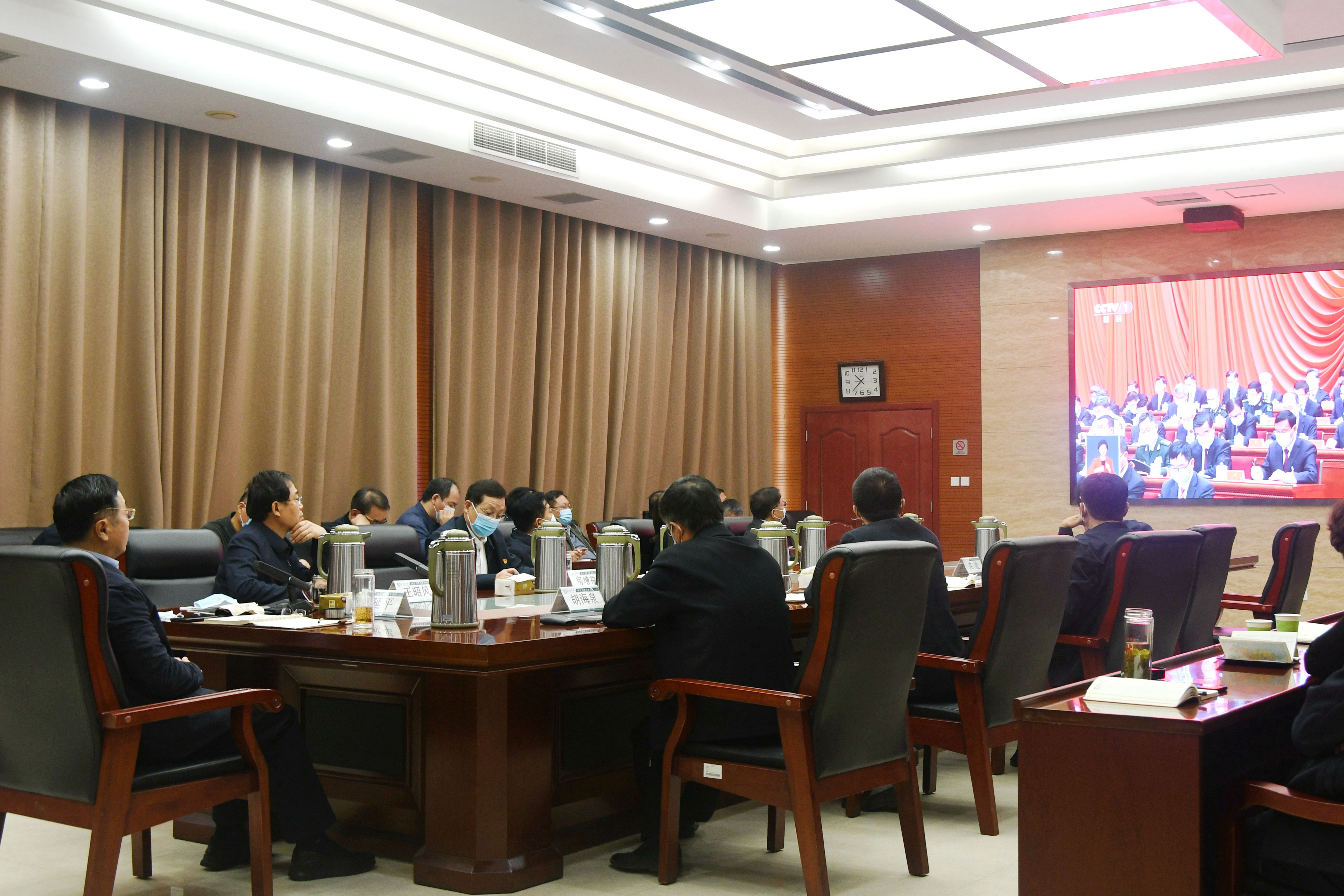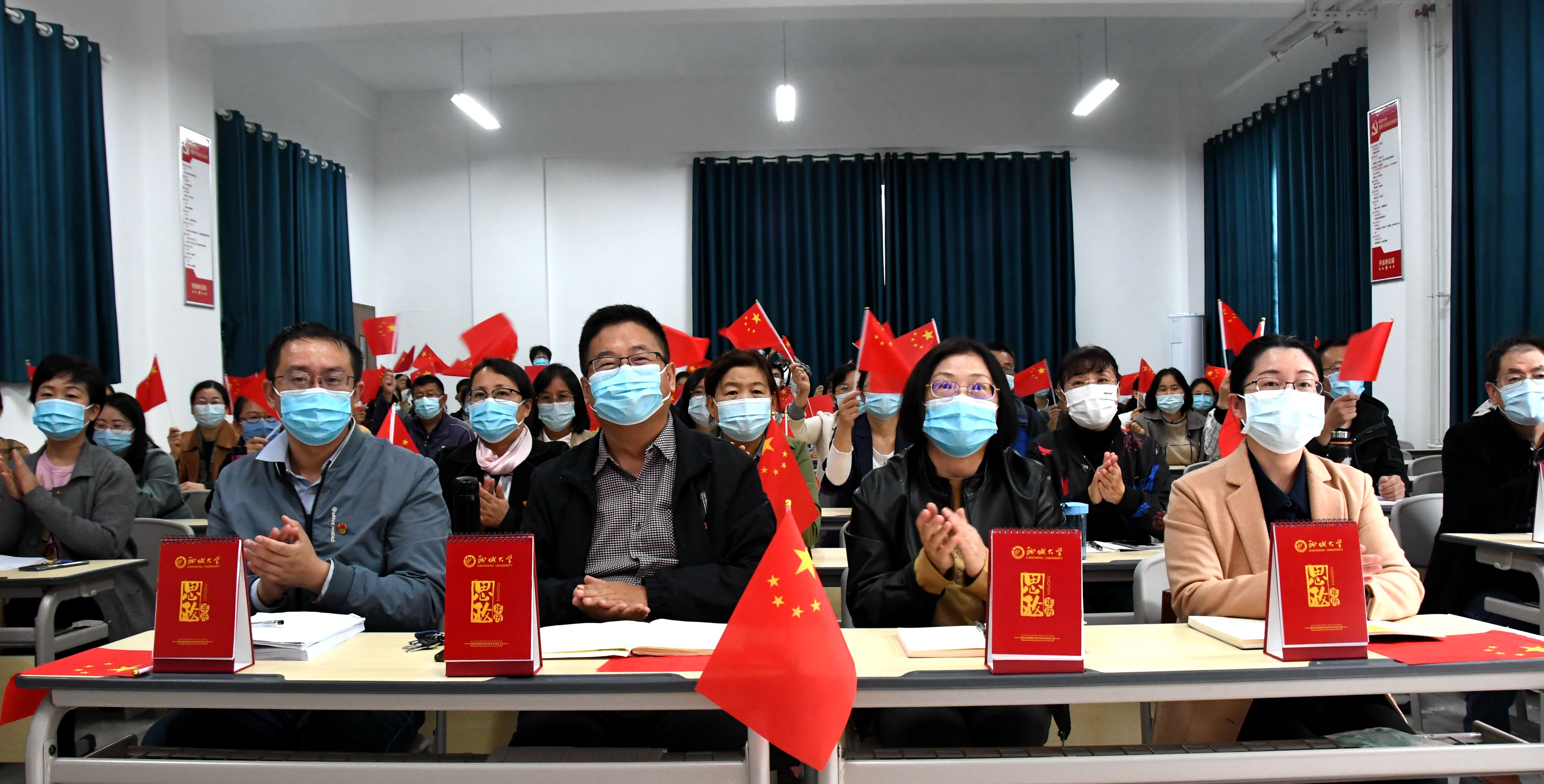 在学校第四会议室,党委领导班子成员与机关部门负责同志汇聚一堂,收看党的二十大开幕会直播。习近平总书记的报告,不时引发热烈的掌声。
