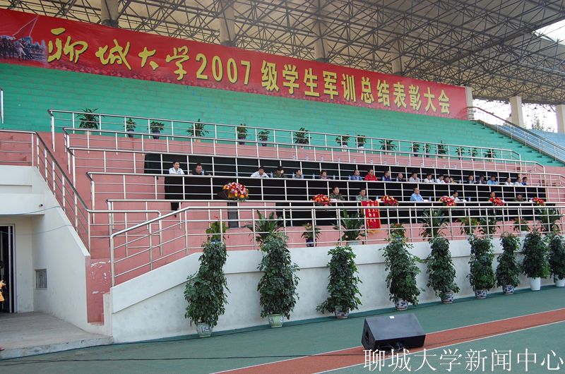 9月20日上午,聊城大学2007级学生军训总结表彰大会在西校区田径场举行,党委副书记、校军训领导小组组长王昌松,副校长李剑萍,承训部队教官、军训团团长李庆炎,军训领导小组副组长、校武装部部长、军训团副团长王刚及军训团有关同志和各学院党总支副书记出席了此次大会。学生工作部(处)长、军训团政委乔丙武主持了大会。