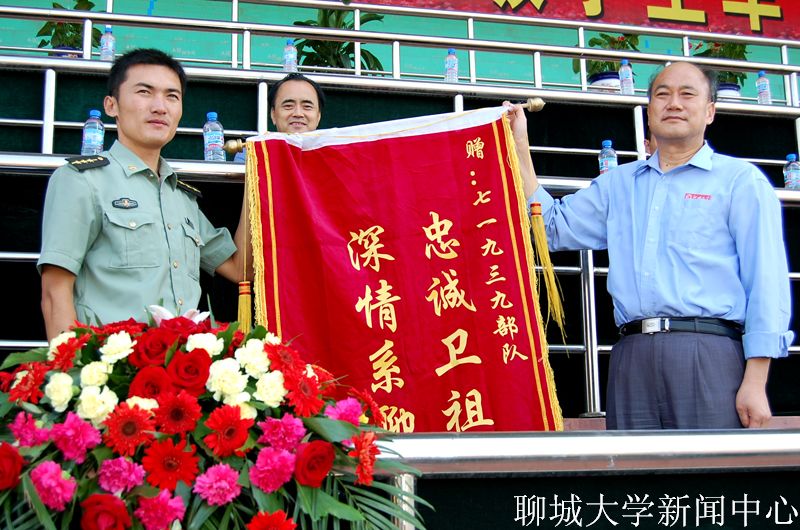 颁奖之后,王昌松代表学校全体师生向承训部队赠送锦旗。