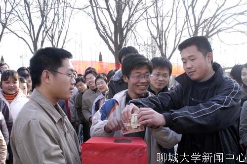 2月24日,数学科学学院组织"伸出你的双手,献出一片爱心"捐款活动。该院全体勤工助学学生相约,每月从自己勤工助学所得工资中拿出一元钱,捐助本禹希望小学贫困学生。