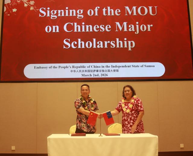 3月2日,萨摩亚国立大学中文专业启动仪式暨中国大使奖学金颁发仪式在中国驻萨摩亚大使馆举行。中国驻萨摩亚大使费明星、萨教育与文化部部长艾里克、萨国立大学校长阿莫萨、中文专业学生、中国大使奖学金获奖学生、萨中留学生会代表、萨大孔院中方教师等80余人出席。此次中文专业的正式启动,标志着中文教育首次以本科专业形式进入太平洋岛国高等教育体系。